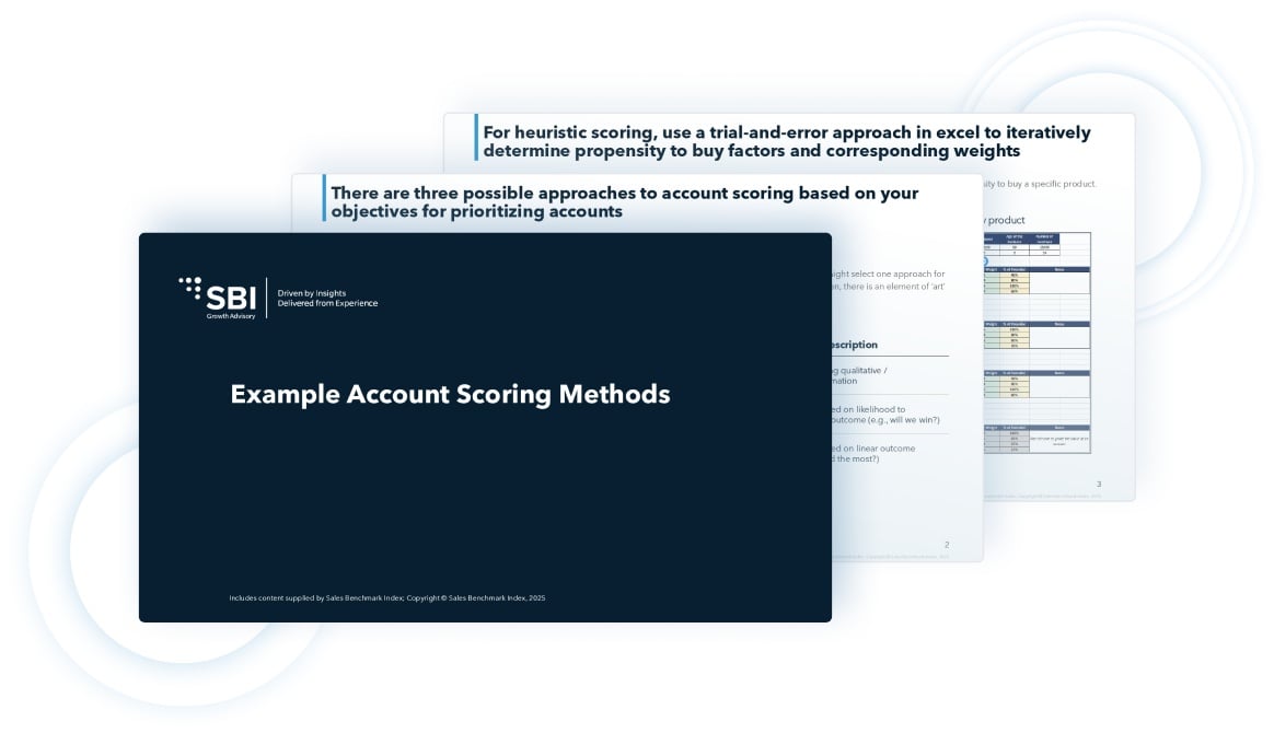 SBI’s Account Scoring Methods guide outlines three proven approaches to help you build a scoring model that aligns sales effort, marketing spend, and customer potential, all grounded in data, not guesswork.
