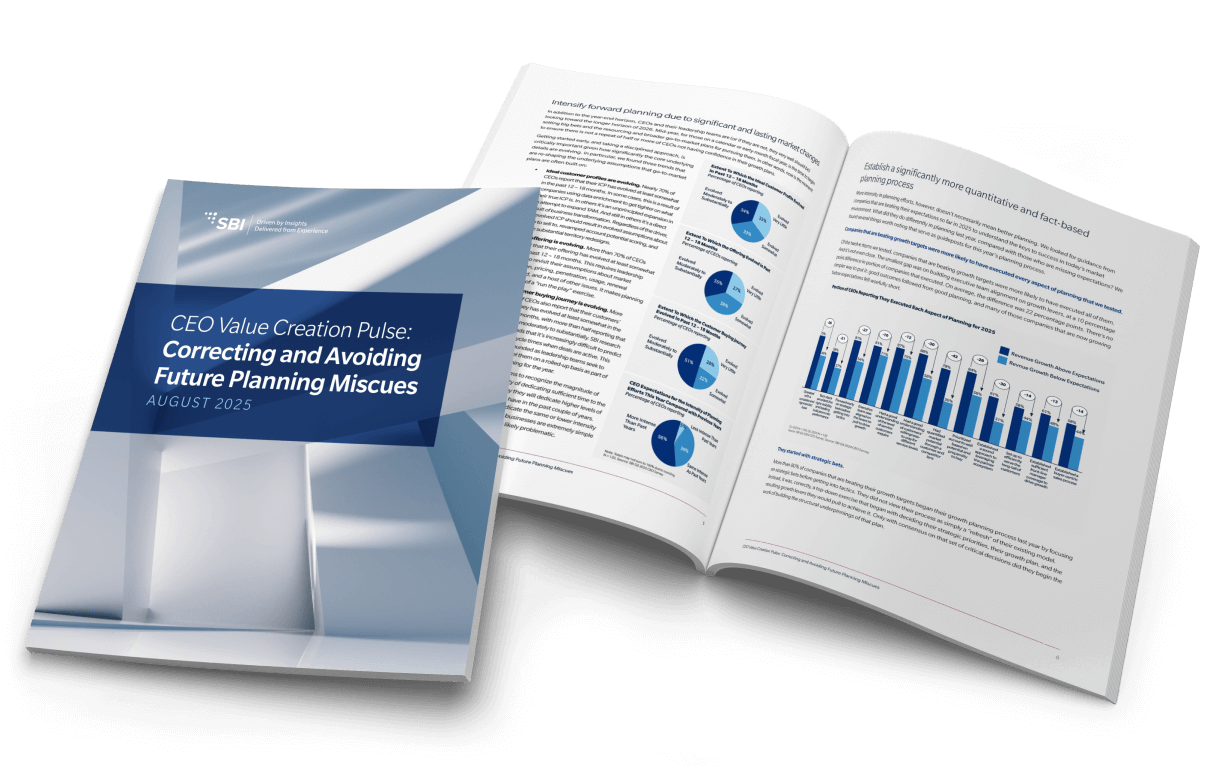 Our latest report CEO Value Creation Pulse: Correcting and Avoiding Future Planning Miscues found that only 50% of CEOs are confident in their current 2025 plan. In other words, CEOs find themselves working with the wrong plan.